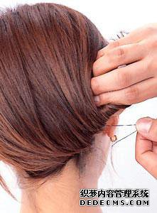 將頭發束起向內側擰起固定在右下方,用小發卡固定