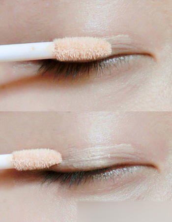 4、在要上眼影的地方涂上眼部打底膏,目的是為了讓撫平眼部肌膚,讓眼影更好的覆蓋在眼部四周。