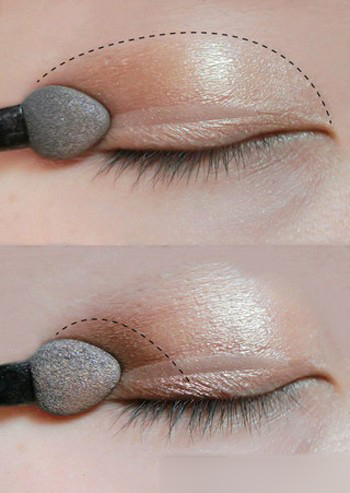 3、用淺棕色眼影從眼尾往眼頭的順序涂抹,然后在眼尾用棕色眼影加強。