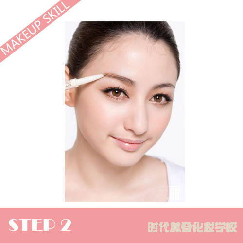 然后是眉妝的部分,我們這里會(huì)用棕色眉筆,順著眉形描繪填補(bǔ)即可。
