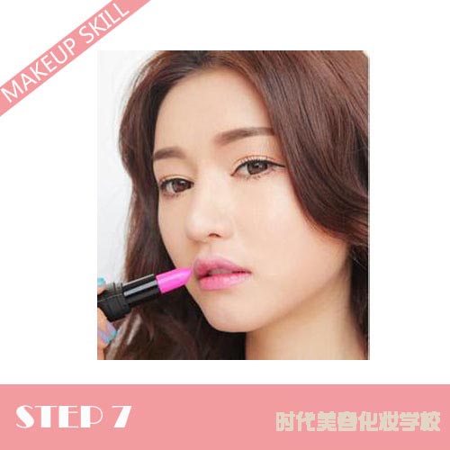 更后就是唇妝方面,橙紅色或者桃紅色都是非常的選擇。這樣就完成了。