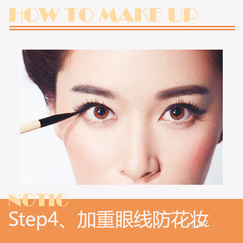 用精細眼線刷沾取防水不暈染的眼線膏,在剛剛畫好的眼線上重新描繪一遍。這樣既可以加重眼線濃度,弱化上眼皮褶皺,又可以防暈染。該步驟用眼線液也可以。