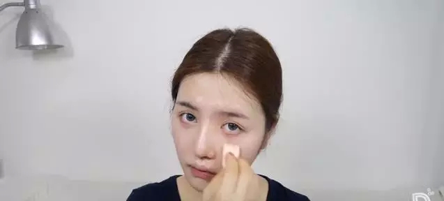 第二步涂粉底。將粉底點在全臉,用海綿均勻涂開。