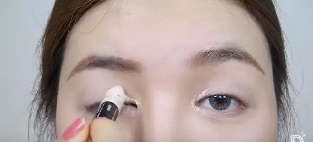 第四步為了防止眼部暈妝,涂上眼部打底妝前乳。
