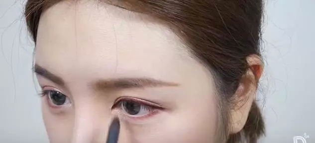 ▼然后用棕色的眼線筆畫一層細細的內眼線,在眼尾處微微加厚,不拉長。