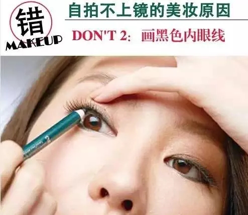 畫黑色內眼線雖然能讓眼神顯得更集中,但實際上讓雙眼顯得更小,使自拍效果不盡人意。所以更好畫淺色甚至白色的眼線,能放大眼睛,使眼神更清醒和清澈。