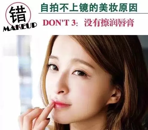 自拍照片上,眼睛之外的焦點就是嘴唇。在涂口紅之前,切記要涂上潤唇膏,增加嘴唇的滋潤度和飽滿度,避免涂上口紅之后出現裂紋和起皮的尷尬現象。
