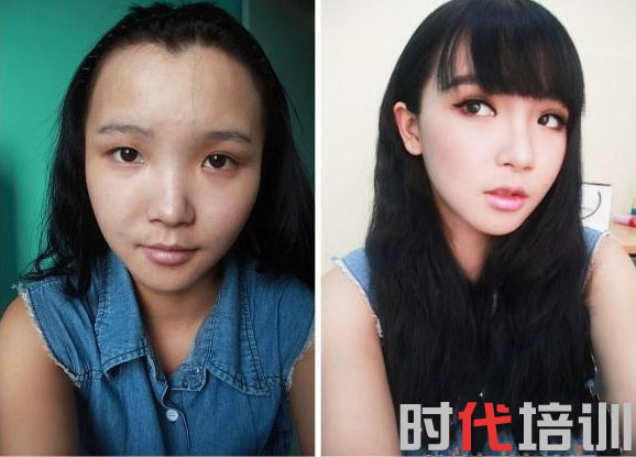 俗話說世界上沒有丑女人,只有懶女人,因為只要女人不懶得化妝,都可以做一個美女。一個正確的化妝手法可以讓你提升形象氣質,有的甚至可以完全將你改變成另一個人。但如果你一點都不懂得如何化妝,只是根據自己想像,或者到化妝品店胡亂的買一些化妝品就開始嘗試著給自己化妝,那么你小心不僅沒把自己化漂亮,甚至把自己化得更丑。以前經常會在大街上看到一些中年婦女,化著一個濃妝,一看就是不懂化妝的,給人留下的只有不好的感覺。如果經常這樣,甚至會導致皮膚越來越差,到時無論你用什么面膜,什么樣的護膚品都無濟于事了。當你在糾結自己買的化妝品是不是不夠好,不斷化更多的錢換更好的化妝的品的時候,其實應該想一下,你化妝的技術問題。你可以咨詢一下專業化妝師,一點都不懂的也可以先在網上大概了解一些基礎知識,大家可以參考一下深圳時代美容化妝學校官網:正確的化妝步驟。好了,下面就帶大家來看看時代學校整理出來的女人妝前妝后的照片對比。