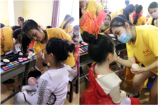 時代國際化妝師們根據(jù)活動主題與每個人小朋友的特征特點,為小朋友們進行獨一無二的化妝造型,孩子們看見自己的妝容一個個樂的可開心了。