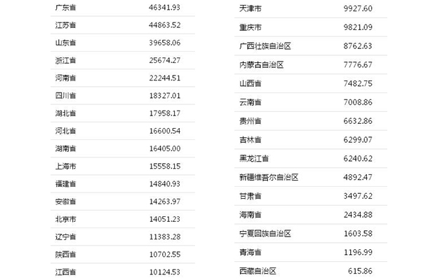 2018上半年各省份經(jīng)濟(jì)排名表(單位:萬元)