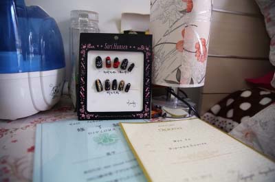 在Wendy的床頭柜上,放著她設(shè)計(jì)的精美指甲,和前去外國進(jìn)修所獲得的證書。證書是一步步得來的。