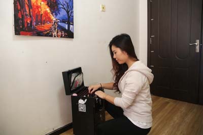 Wendy喜歡畫畫,她的小屋里還掛著她畫的油畫。有一定的繪畫基礎(chǔ),使Wendy的美甲彩繪能力和色彩搭配更強(qiáng)。一切準(zhǔn)備完畢,Wendy拉著工具箱,出發(fā)去今天的第一個(gè)顧客家里。別看箱子不大,但足足有60斤。Wendy每天就是提著這么重的箱子來來回回。