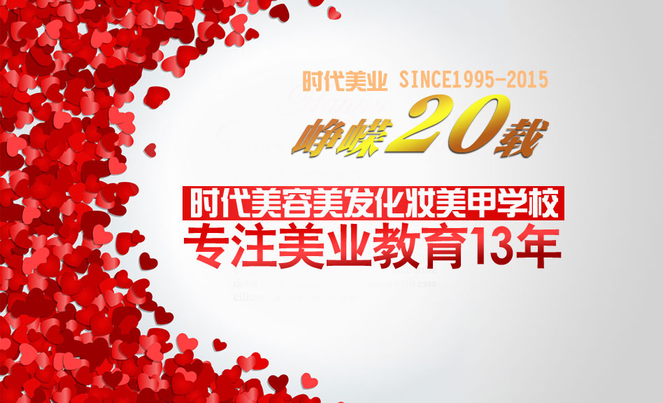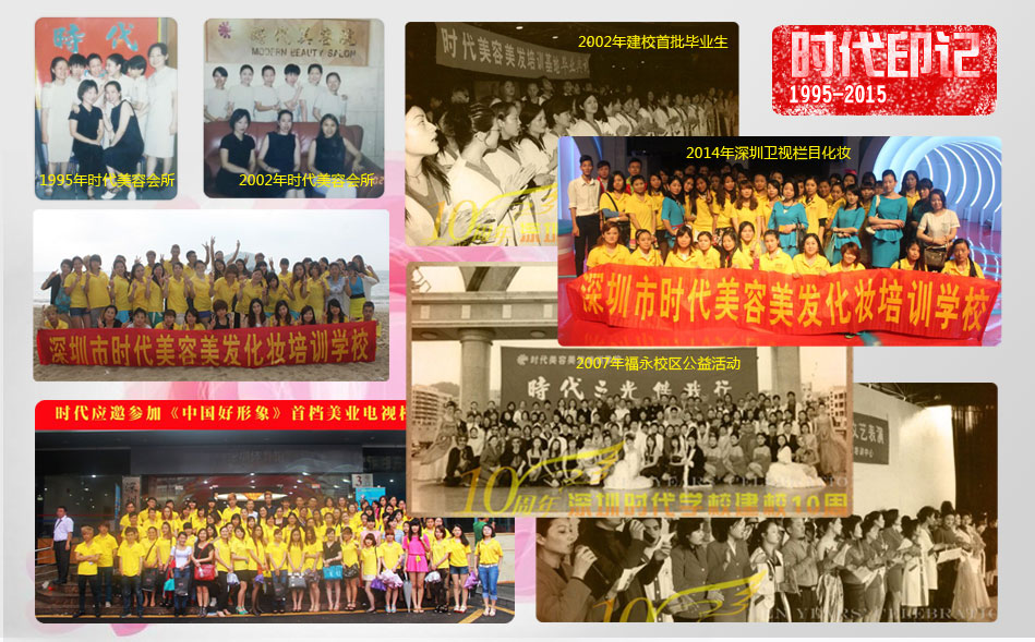 13年的風風雨雨,13年的繽紛征程,銀裝素裹,駿馬馳騰,時光輪回,鳳凰涅槃。如薪火相傳,生生不息,13年來,時代美容化妝學校人才輩出。為社會提供大量的美業的精英。有的是世界頂級的時尚造型師,有的極具盛名的頂尖化妝師,有的是享譽中外的美容大師。正是由于一代代時代人的前赴后繼,成就了今天的時代,今天時代已成為了深圳市再就業職業技能培訓基地,“深圳市十大美業學校”,并且是亞裔小姐、時裝模特大賽等活動指定化妝造型單位。風雨兼程,共赴輝煌。