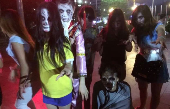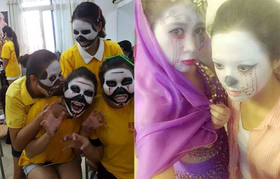 10月31日,一場名為“萬圣節派對”的活動在熱舞派對酒吧畫下了圓滿的句號,活動現場亦是熱鬧非凡、精彩不斷。南瓜燈、骷髏怪、僵尸、魔鬼等化妝造型輪番上演,為現場朋友們營造了一個盡情歡樂的萬圣節。接下來看看時代化妝學校強大的化妝技術造就的令人難忘的“妖魔鬼怪”。